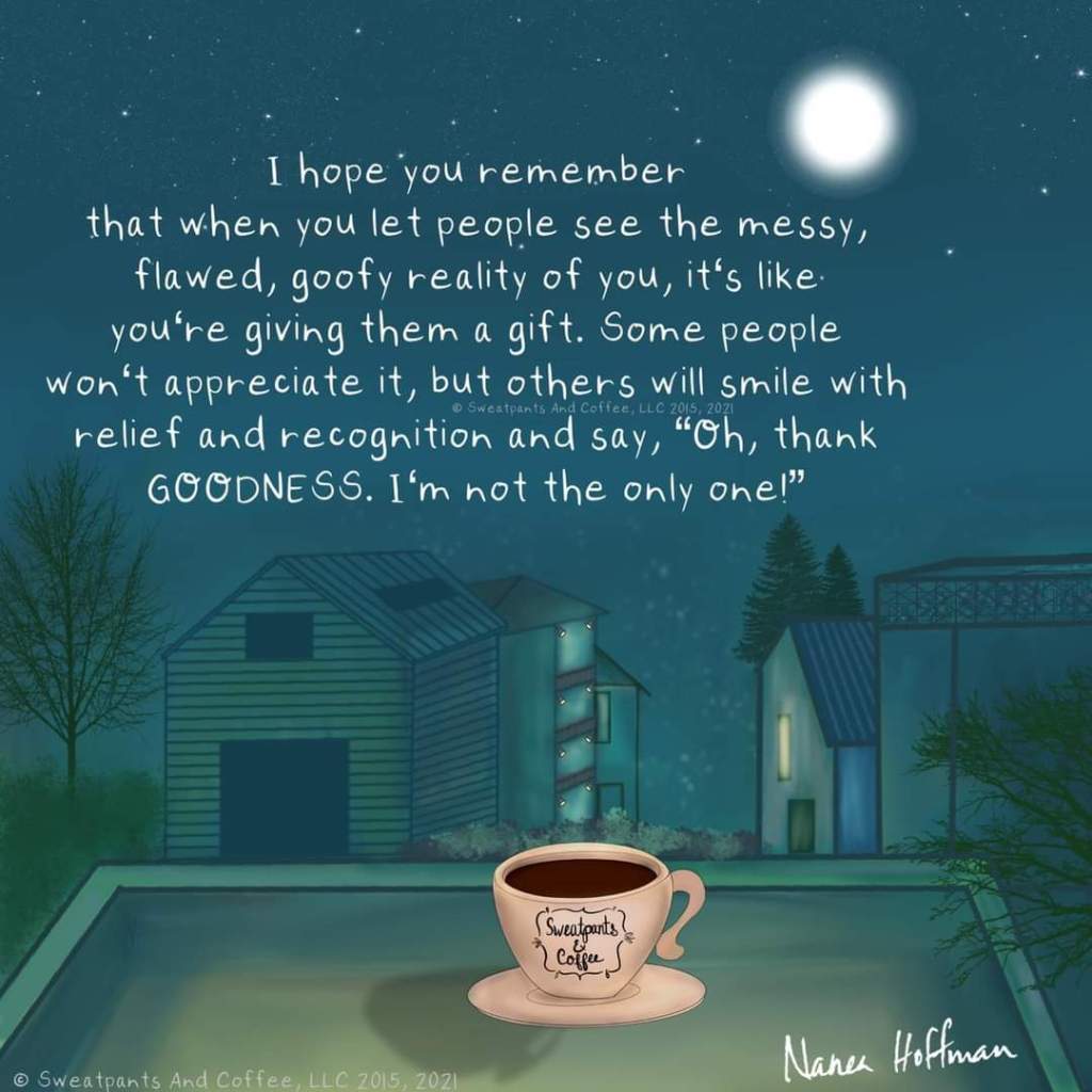 I know the right people – the people who love me and get me and see me – love me as I am. My best friend does. Our Crappy dinner friends do. Their love is not dependent on how recently my floor has been mopped or how thick the clutter has gotten.