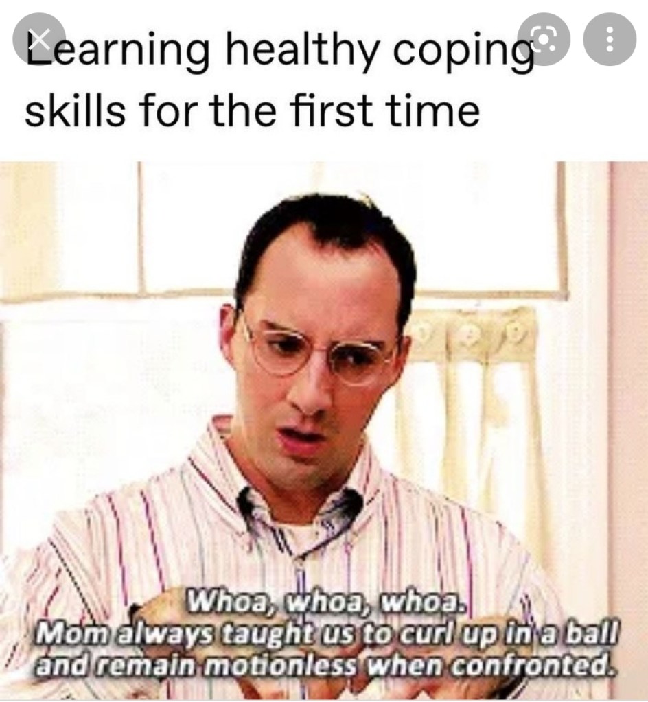 Ideally, in therapy, we learn from our client about where they are, and help them move from unhelpful coping mechanisms to more helpful coping mechanisms.