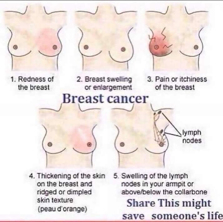 You sometimes hear about those warnings, and that people who notice changes should go and get such things checked out by a doctor and have a mammogram.