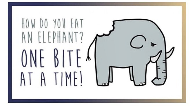 A big part of what I’m learning these days is to eat that elephant, you just have bite off one chunk at a time.